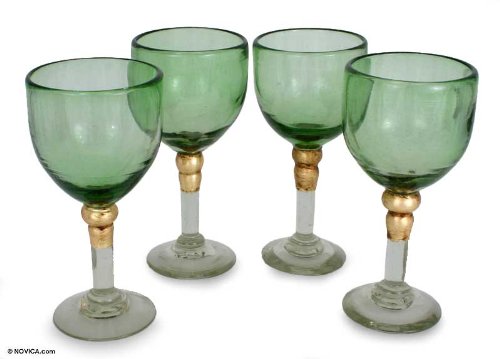 ... Blown glass wine glasses, 'Golden Forest' (set of 4)Cheapest Price 2013 Blown glass wine glasses, 'Golden Forest' (set of 4)