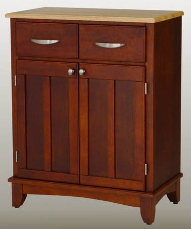 FinishMedium CherryNatural Constructed of hardwood and wood products in a natural finish with a natural wood top Features two utility drawers and two wood framed cabinet doors with an adjustable shelf for plenty of inside storage Brushed steel hardware Dimensions Server size 2925 x 15